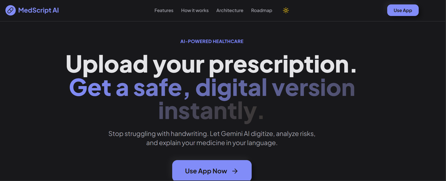 AI-powered healthcare tool that converts handwritten medical prescriptions into safe, digital formats using Gemini 3 Pro. Performs drug interaction checks, overdose detection, age-based risk analysis, and provides audio & language-friendly medical instructions.